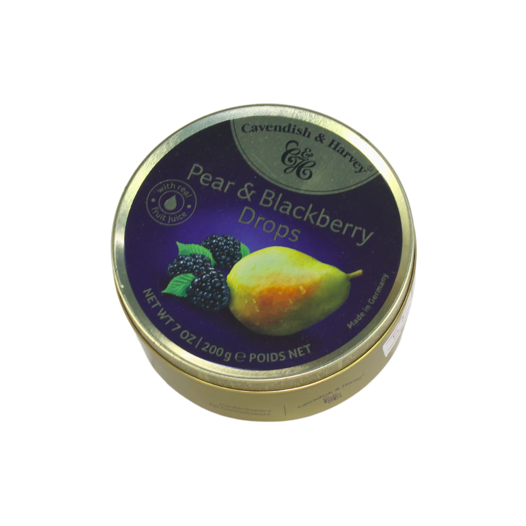 Los Pear & Blackberry Drops de Cavendish & Harvey son una experiencia de sabor refinada, combinando la dulzura de la pera con la intensidad de la mora. Hechos en Alemania con jugo de fruta natural, estos caramelos duros vienen en una icónica lata metálica ideal para regalar o llevar siempre contigo.