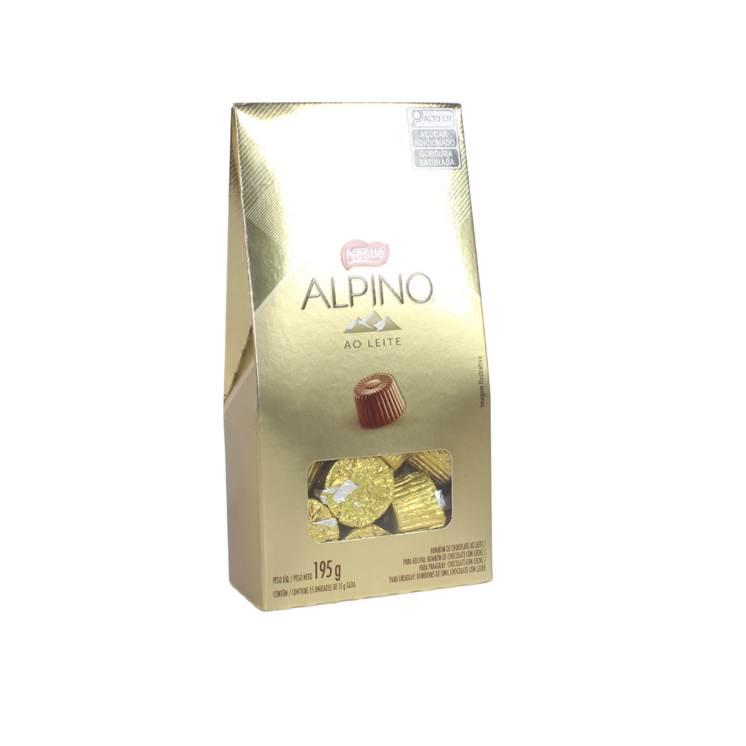 Déjate conquistar por la elegancia del chocolate suizo reinterpretado por Nestlé con Alpino ao Leite. Suave y cremoso, este bombón envuelto en dorado contiene el equilibrio perfecto entre dulzura y textura, ideal para regalar o disfrutar en una pausa indulgente.