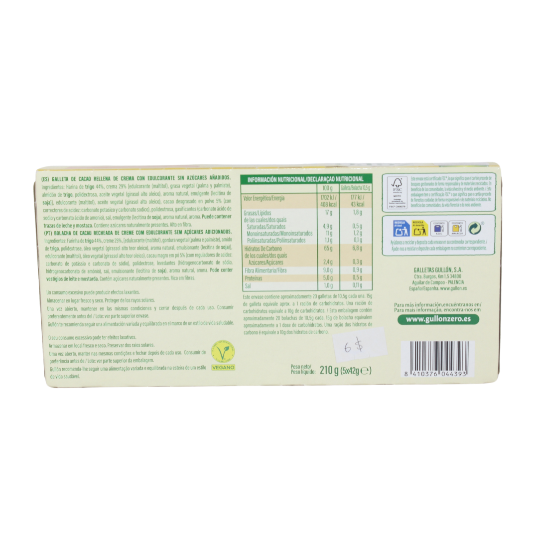 Disfrut谩 lo mejor de una merienda dulce sin preocuparte por los az煤cares a帽adidos. Las Twins de Gull贸n Zero combinan galletas de cacao crujientes con un cremoso relleno, ideales para acompa帽ar un caf茅 o como snack saludable. Aptas para diab茅ticos y quienes buscan reducir su consumo de az煤car, sin sacrificar sabor.