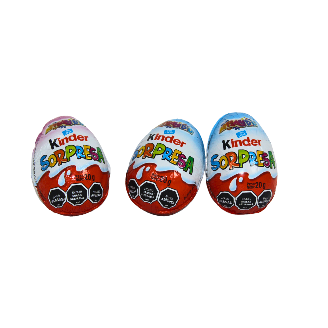 Kinder Sorpresa combina lo mejor de dos mundos: un exquisito chocolate con leche y una divertida sorpresa en su interior. Este cl谩sico favorito de chicos y grandes sigue generando sonrisas con cada apertura. Cada huevo contiene un juguete sorpresa que fomenta la imaginaci贸n, la curiosidad y el juego creativo.