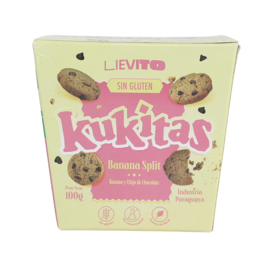 Las Kukitas Banana Split de Lievito son una propuesta artesanal sin gluten, con sabor a banana y chips de chocolate que recuerdan a un delicioso postre. Libres de l谩cteos, huevo y trigo, son ideales para personas con restricciones alimenticias o que buscan opciones m谩s saludables. Fabricadas en Paraguay con cari帽o y compromiso con la calidad.