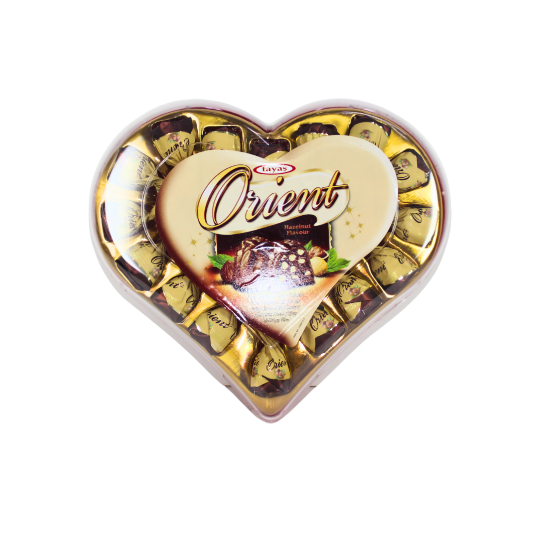 Dale un toque especial a cualquier ocasión con los exquisitos bombones Tayas Orient en su icónica presentación en forma de corazón. Cada pieza es una delicia de chocolate suave con un irresistible relleno de crema sabor avellana y crocantes detalles que elevan la experiencia.